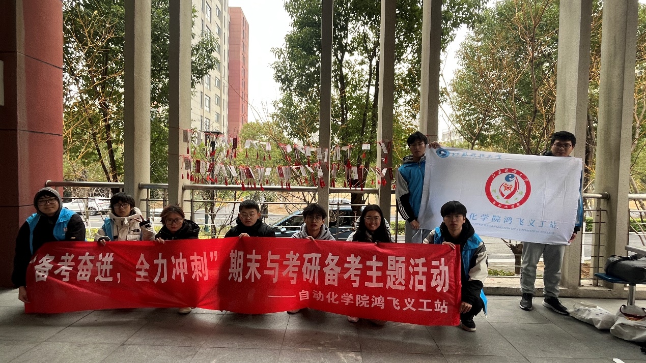 “长风破浪会有时,直挂云帆济沧海。”在期末与考研的关键时刻,为了增强学生备考信心、缓解考试焦虑,共同营造积极向上、互助共进的学习氛围,江苏科技大学自动化学院鸿飞义工站于2024年12月9日至12月25日,在长山校区举办“期末与考研备考”主题活动。此次活动包括线上学习打卡和线下备考祈愿两部分,旨在帮助同学们在紧张备考期间保持积极心态、提高备考效率。