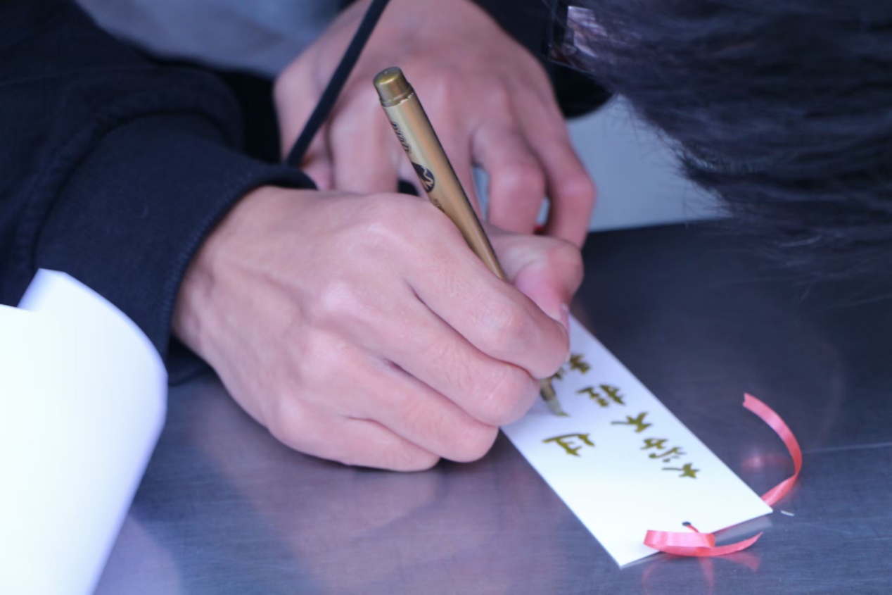 图二:参与者在祈愿牌背面写上目标与励志语句