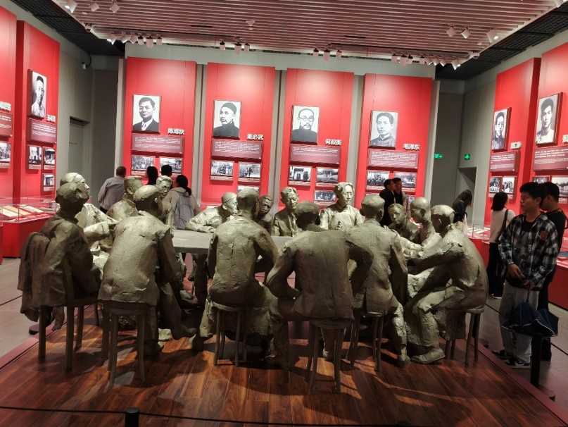 走进中共一大会址纪念馆,庄重的氛围瞬间将大家带回那个风雨如晦却孕育希望的年代。馆内珍贵的历史文物、生动的场景还原、详实的文字记载,无声诉说着中国共产党诞生的艰辛与伟大。在“伟大的开端” 展区,党员们驻足凝视一幅幅泛黄的历史照片、一件件承载记忆的实物 —— 从《共产党宣言》早期译本到革命先辈用过的文具,从五四运动时期呼吁 “抵制日货、团结救国” 的传单复刻件到记录建党历程的文献资料,每一件展品背后都有着动人的革命故事。