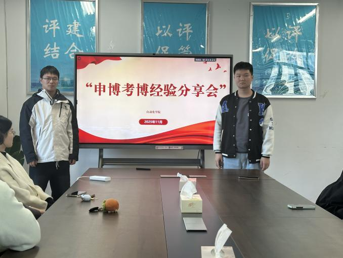 11月13日14时,自动化学院在446会议室成功举办申博考博经验分享会。本次分享会邀请已成功上岸的博士研究生龙志鹏、杨贺年担任主讲人,围绕申博考博流程、备考方法及材料准备等核心内容,为有深造计划的在读研究生提供了针对性指导。