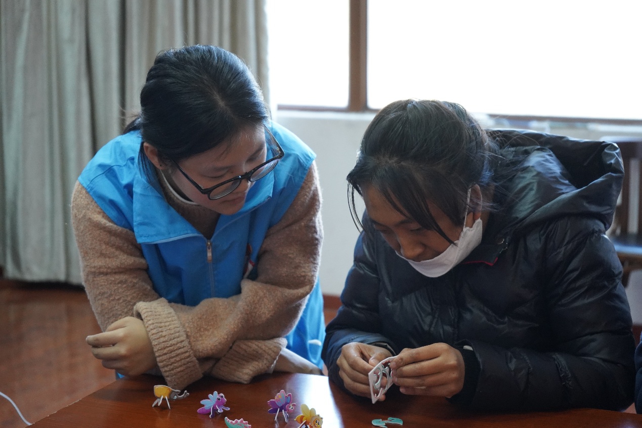 “全神贯注”拼图活动里,义工耐心陪伴在旁,指导参与者动手拼接拼图,每人完成两到三个作品。大家在专注地操作中认识拼图上的事物,不仅锻炼了动手能力,更在完成作品的成就感中增强了自信心,一张张拼图承载着欢乐与收获。