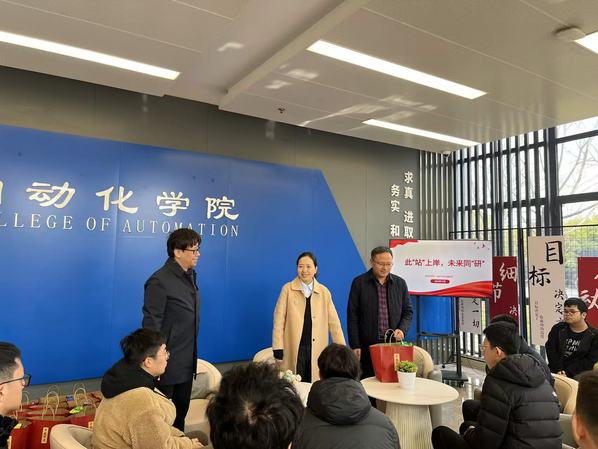 星光不问赶路人,时光不负有心人。在2025年全国硕士研究生招生考试即将到来的冲刺阶段,为缓解考研学子的备考压力,传递学校的关怀与温暖,12月10日上午,江苏科技大学自动化学院在学院一楼会客厅举办了以“此‘站’上岸,未来同‘研’”为主题的“一站式”社区考研慰问活动。副校长任南,学院党委副书记郭峰、副院长齐亮出席了本次活动,与考研学子面对面交流,为他们加油鼓劲。