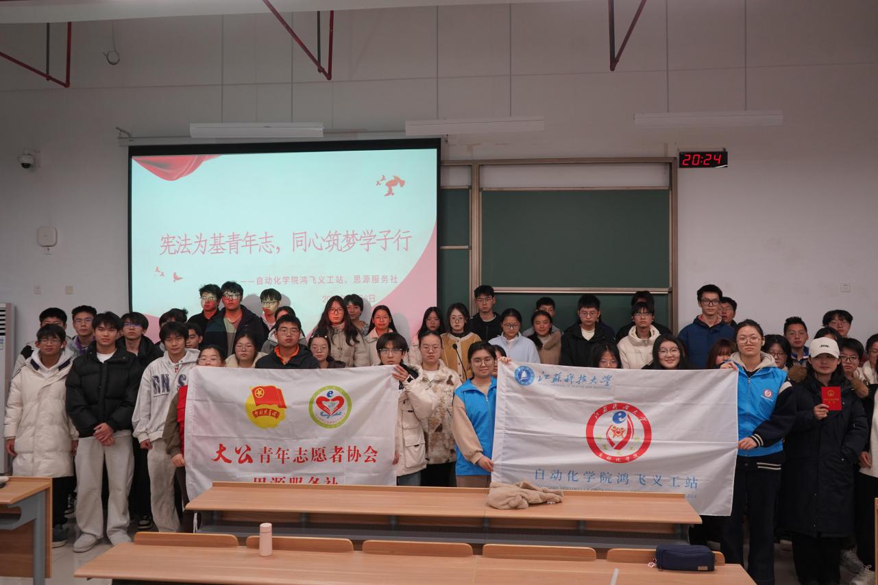 在第十二个“国家宪法日”到来之际,为深入学习宣传习近平法治思想,大力弘扬宪法精神,增强青年学生的法治意识和责任担当,12月6日,江苏科技大学自动化学院鸿飞义工站联合思源服务社在江苏科技大学长山校区举办“宪法为基青年志,同心筑梦学子行”宪法主题特色活动。本次活动不仅让宪法学习更具吸引力,也为青年学子提供了展示法治素养与创新表达的平台。