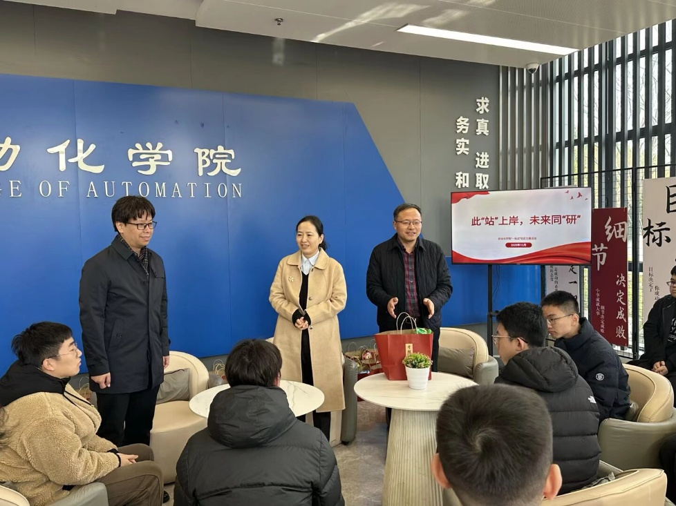 此“站”上岸,未来同“研”。为助力学院考研学子坚定备考目标、自信迎接考试,2025年12月10日上午,在自动化学院一楼举办考研送温暖活动,为正在研途逐梦的学子们送上暖心关怀与诚挚祝福。校党委常委、副校长任南,自动化学院党委副书记郭峰、副院长齐亮,以及备战考研的同学们共同参与了本次活动。