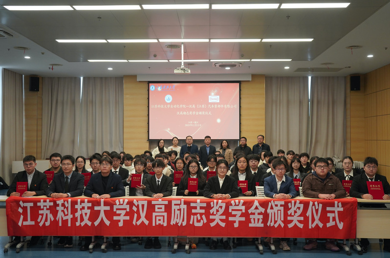 2025 年 12 月 23 日上午,江苏科技大学汉高励志奖学金颁奖仪式在图书馆辅楼 B104 报告厅隆重举行。汉高(江苏)汽车零部件有限公司总经理郑良、汉高大中华区粘合剂事业部人力资源合作伙伴吴娴等企业嘉宾,江苏科技大学自动化学院党委书记张霞、副院长陈迅及学院师生代表共同出席本次仪式。仪式由自动化学院党委副书记郭峰主持。