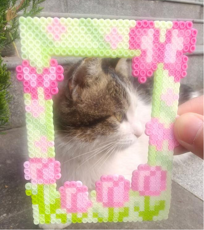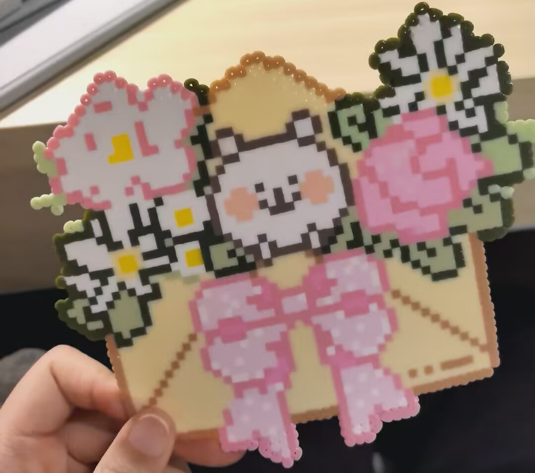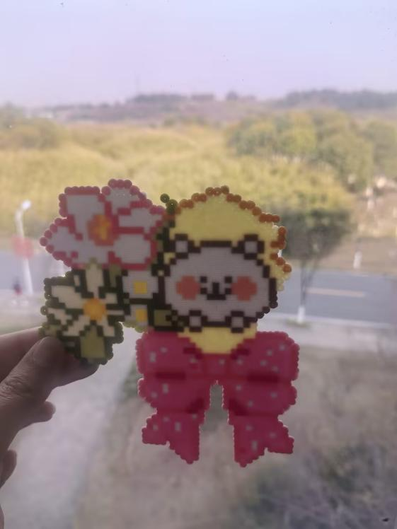 在动手实践环节,三名志愿者穿梭在活动现场,有人负责分发拼豆、专用模板、镊子等材料,有人手持相机捕捉同学们专注创作的瞬间。同学们充分发挥想象力与创造力,依托现场提供的“春”字主题模板、相框模板及基础创意图案模板,有条不紊地完成拼搭、熨烫、定型等全套制作流程。大家专注排布每一枚拼豆,或用深浅不一的绿色勾勒春日的层次感,或用斑斓色彩点缀春日的生机,有的同学独自潜心创作,沉浸在自己的春日构想中;有的则与邻座轻声交流配色技巧、分享创作灵感,在互动中增进情谊。一枚枚小巧的拼豆,在同学们的指尖逐渐拼接成春意盎然的作品,每一件都承载着大家对春日的热爱与期许。沉浸式的手作体验让同学们在忙碌的学习之余获得轻松治愈的时光,完成后的作品由参与者自行带走留念,成为春日校园生活的独特记忆。