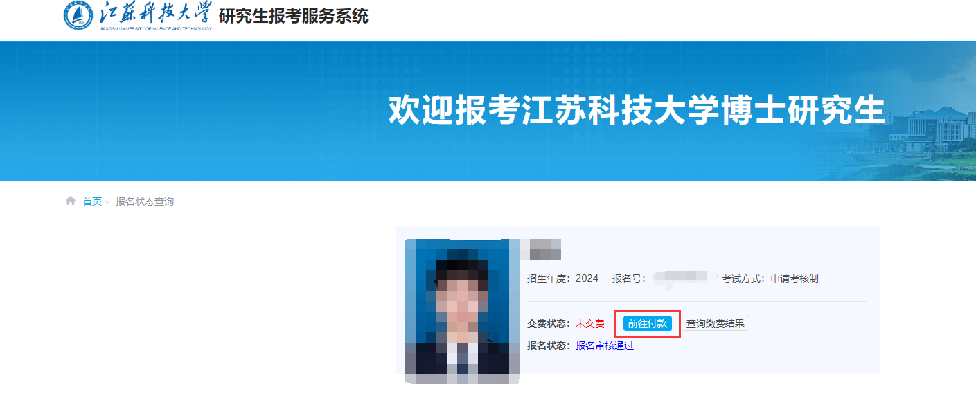 第二种方式:微信公众号“江苏科技大学研究生招生办公室”-博士招生-招生管理系统