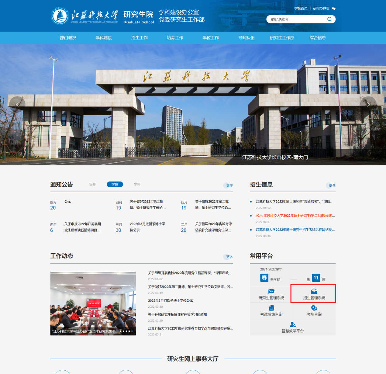 第一种方式:江苏科技大学研究生院官方网站(https://yjsb.just.edu.cn/)-常用平台-招生管理系统